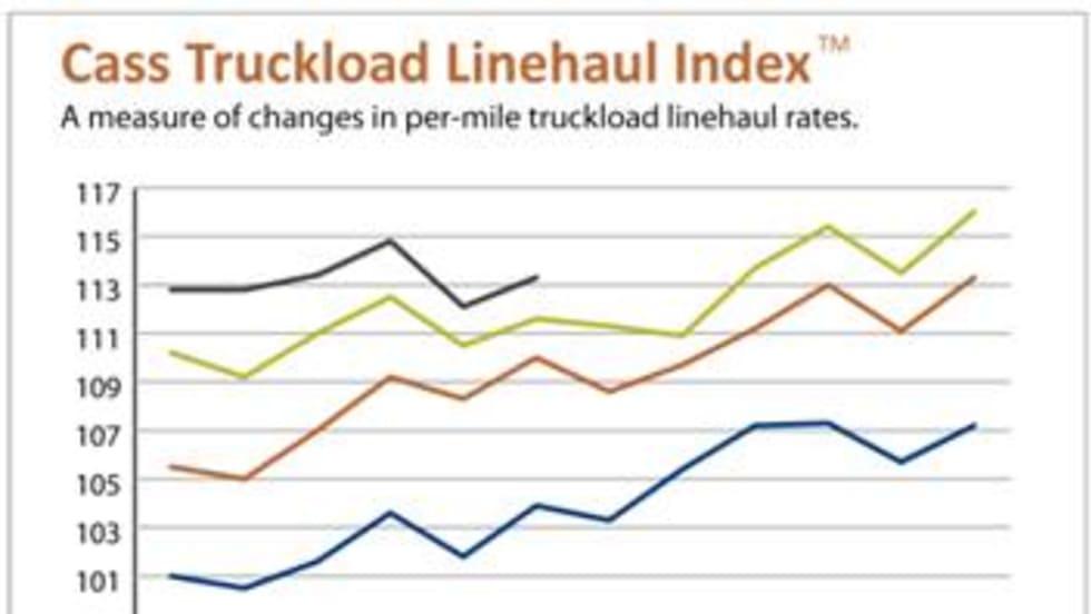 Truckload linehaul rates in November were 1.8% above the same month last year, according to the latest Cass Truckload Linehaul index.