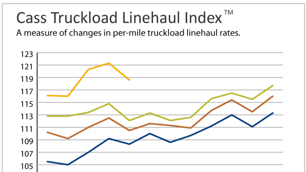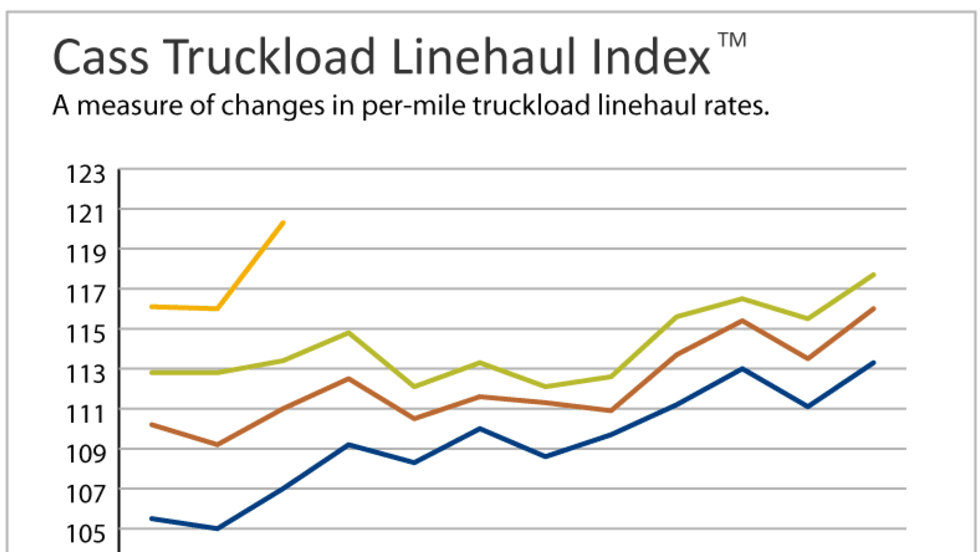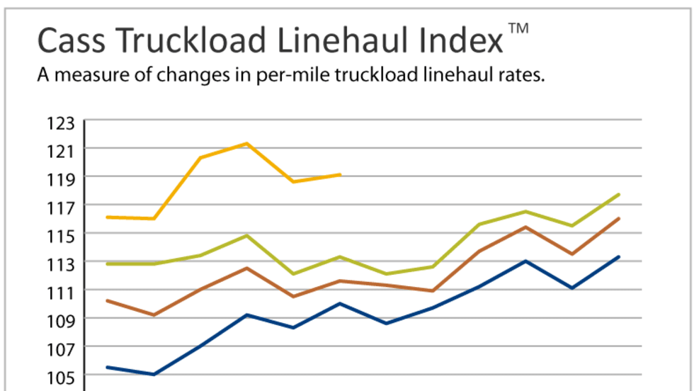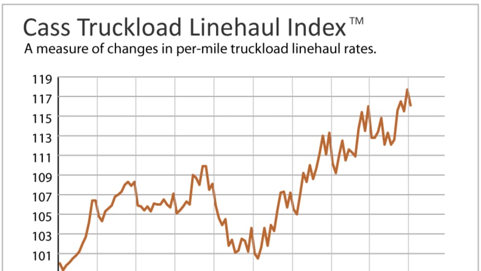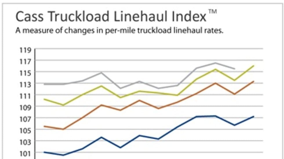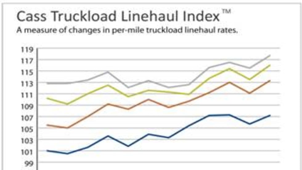 The Cass Truckload Linehaul Index, which measures changes in per-mile truckload linehaul rates, rose 6.7% year-over-year in September and increased 2.4% above the August level.