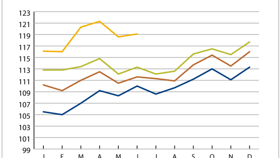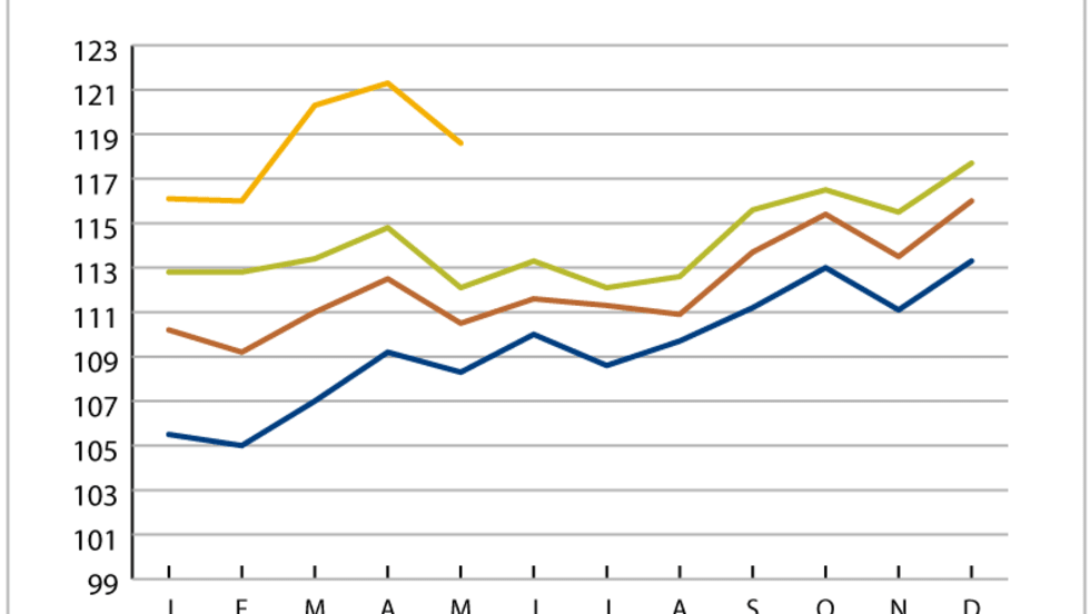 Compared to the same time last year, truckload linehaul costs in May averaged 5.8% higher, an increase that is consistent with those of 5.7% in April and 6% in March, according to the latest Cass Truckload Linehaul Index.
