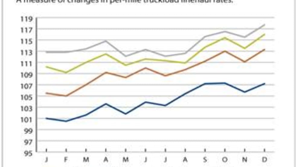 Truckload linehaul rates in November were 1.8% above the same month last year, according to the latest Cass Truckload Linehaul index.