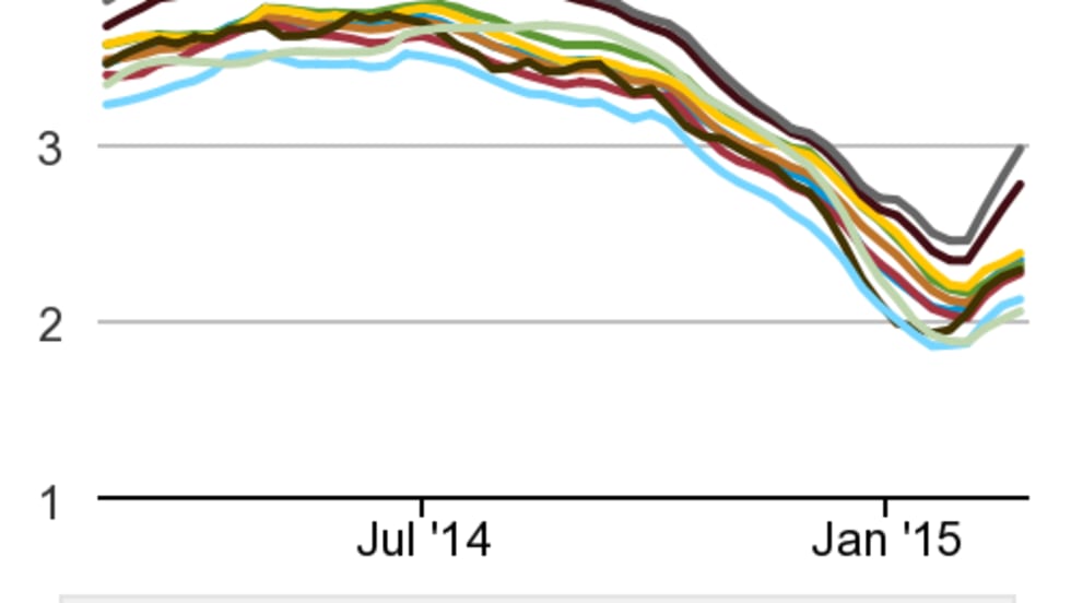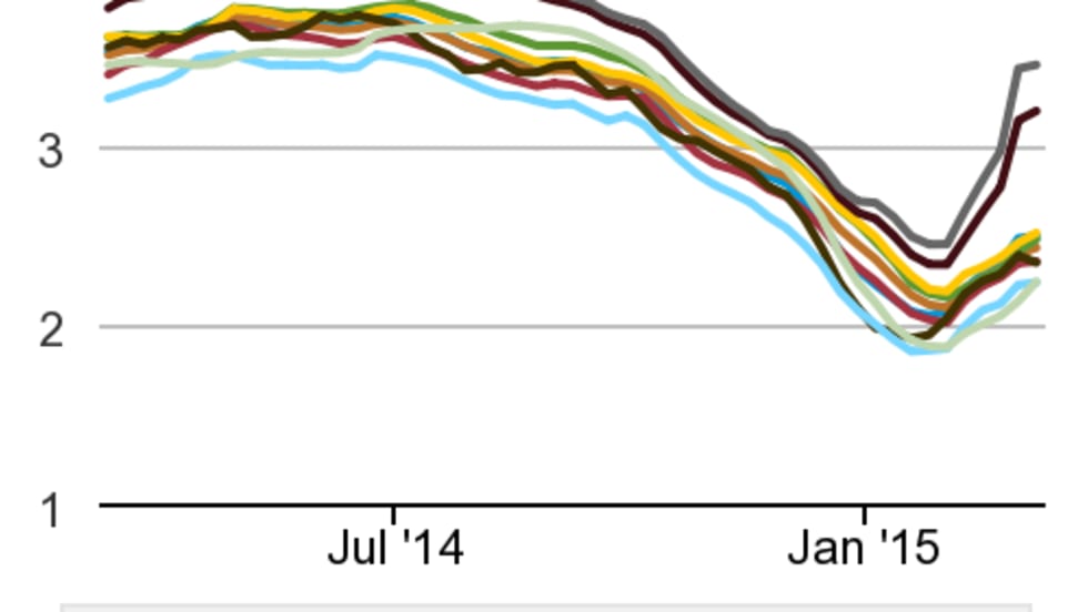 Diesel prices continue rebounding since hitting their lowest level in five years last month gaining 3.6 cents this week to reach a national average of $2.93 per gallon.