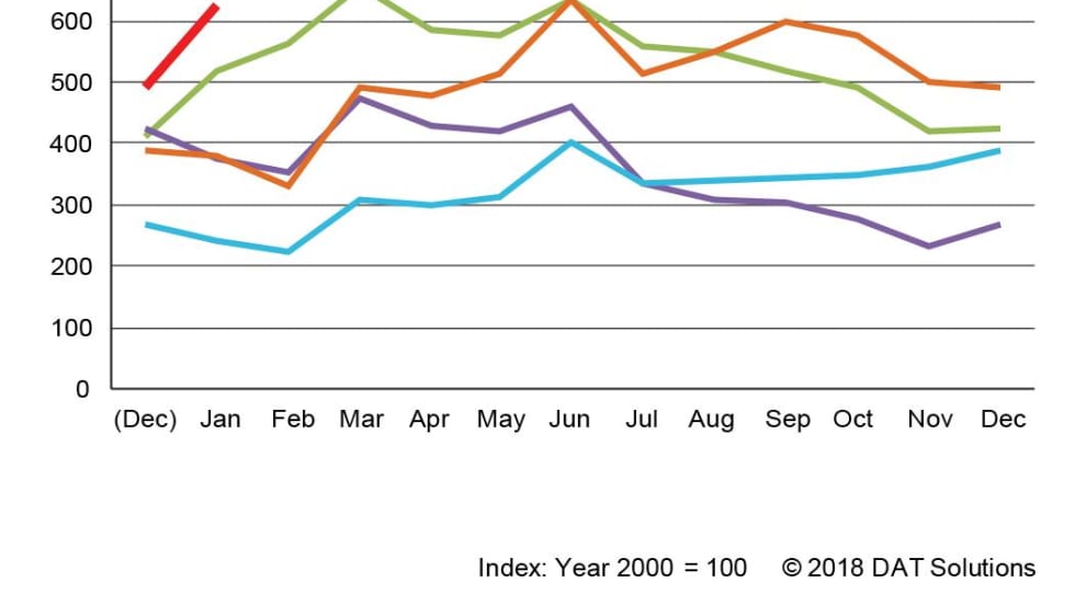 Read More →Spot truckload rates for van, refrigerated, and flatbed freight set new records in January as capacity remained tight due to shipper demand and fallout from the electronic logging device mandate, according to load board operator DAT Solutions.