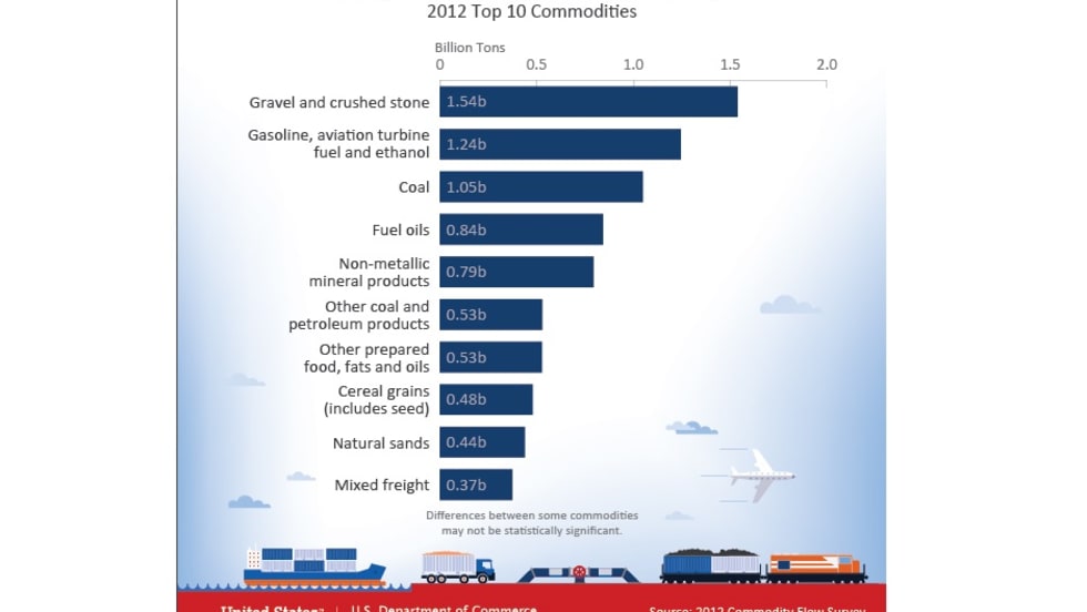 Trucks accounted for 73.1% of the total value of commodities shipped in 2012 with a worth of more than $10 trillion, according to a U.S. Census Bureau survey.