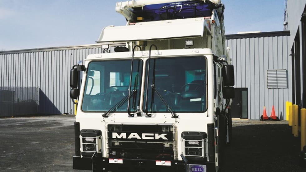 Mack’s LR model features high-powered, smart hydraulics and finely tuned details to help refuse fleets move trash fast.