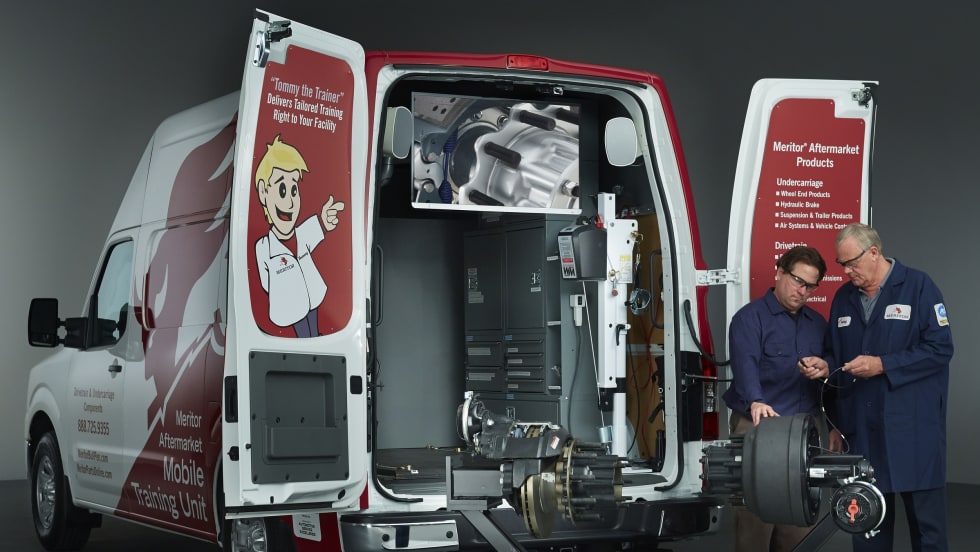 Meritor has long positioned itself as a provider of information and training, but has gone one step further developing two Nissan high-roof NV3500 trucks that will deliver onsite product and systems education to fleets, warehouse distributors and independent service garages in the United States and Canada.