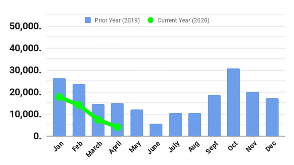 North American Class 8 orders took another plunge in April to an unprecedented level of 4,000 units, according to new reports from FTR and ACT Research.