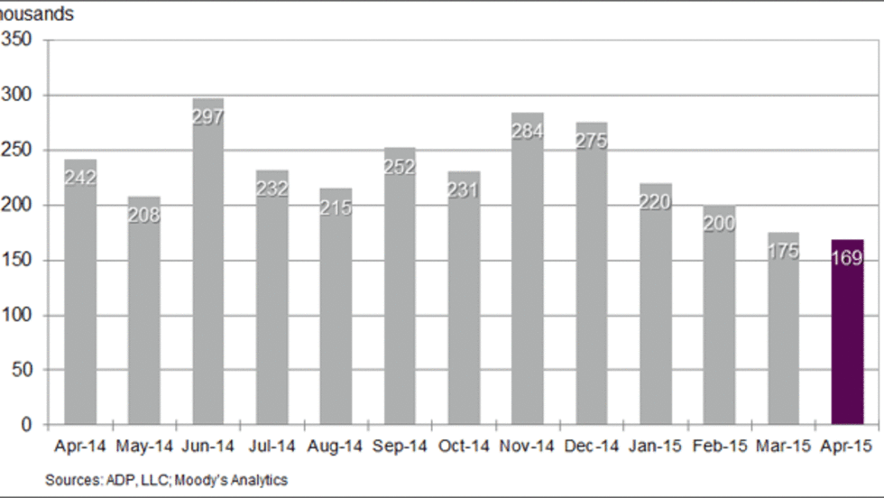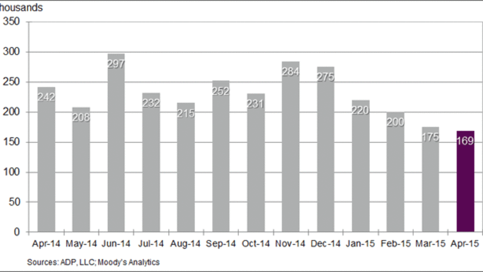 Private sector, non-farm employment increased by less than 200,000 jobs in April for the second straight month, according to a new report released Wednesday.