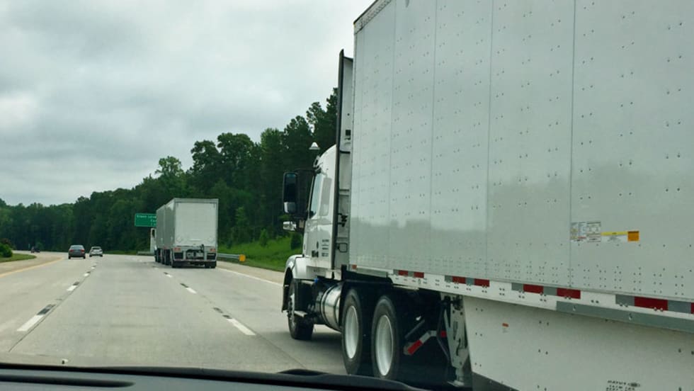 On a North Carolina highway, Volvo Trucks put on a three-truck platooning test in collaboration with FedEx to demonstrate how the technology could handle every day situations.