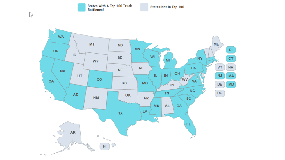 The American Transportation Research Institute released its annual list highlighting the most congested bottlenecks for trucks in the U.S. Fort Lee, New Jersey, topped the list for the third year in a row.
