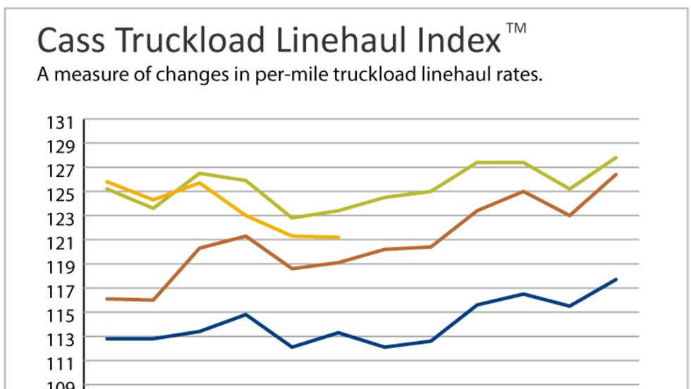 Truckload linehaul rates in June were nearly the same as the month before, but they are still below levels from a year ago, while there seems to be no end to the recent drop in rates for intermodal shipments.