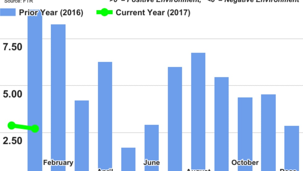 FTR’s Trucking Conditions Index for February took a positive step, as the company's analysts expect the index to approach a double digit positive reading by the end of the year due to the combination of freight growth and still-planned regulatory headwinds in 2017.