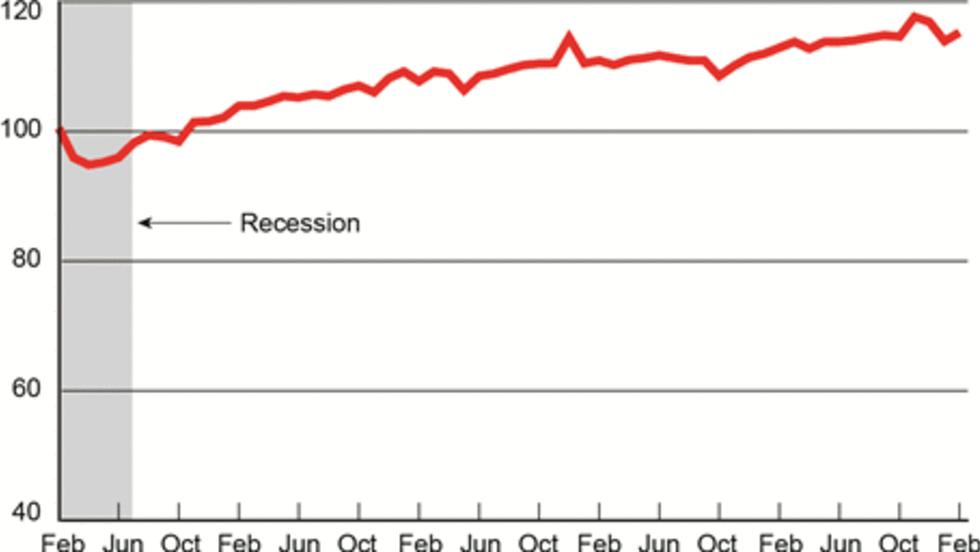 The amount of freight carried by the nation’s for-hire transportation industry rose 1.2% in February from January, rising after two consecutive monthly declines.