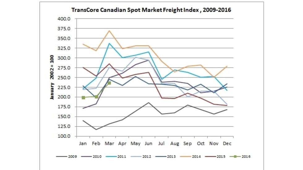 Trucking and four other transportation modes carried less U.S. freight by value with North American Free Trade Agreement (NAFTA) partners Canada and Mexico in March 2016 compared to a year earlier, according to a new Transportation Department report.
