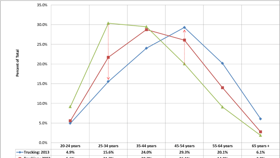 The median driver age had risen significantly over the past two decades according to a new paper released by the American Transportation Research Institute that analyzed the demographics of driver age.