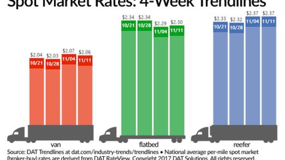 Read More →The availability of spot truckload freight slipped 1.6% and the number of posted trucks rebounded 7.6% for the week ending Nov. 11, according to DAT Solutions and its network of load boards.
