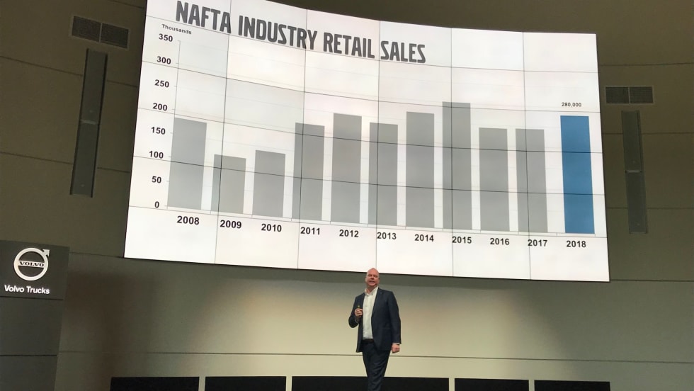 Volvo Trucks is expecting North American Class 8 truck sales this year to significantly exceed its current official projection of 280,000.