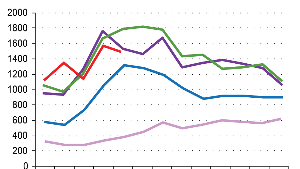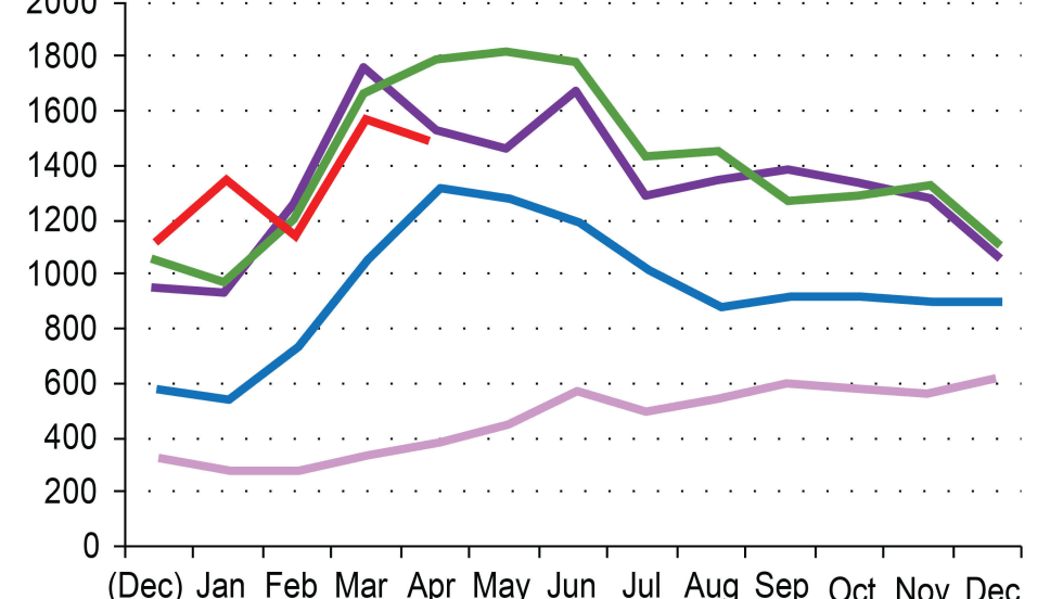 Spot market freight volumes reported by the DAT North American Freight Index declined 16% compared to the record April high in 2012. The year-over-year freight declines were seen across all equipment types: van load volume declined, refrigerated loads slipped 10% and flatbed freight dropped 15%.