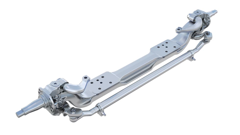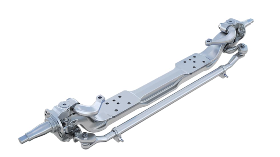 The strong steer axles come with a heavy-duty, cross-brace-reinforced front frame assembly, bolted cross members and either 10-5/8-inch frame rails with insert or 10 3/4-inch frame rails.