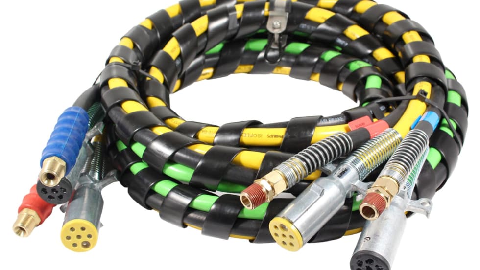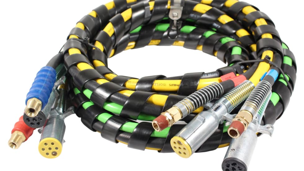 Phillips Industries has introduced new 4-in-1 combination electrical and air assemblies with liftgate and auxiliary cables with multiple plug and seal options. The new Phillips 4-in-1 spiral wrapped assemblies with hanging clamp and clip keep cables kink free and organized for a clean look.