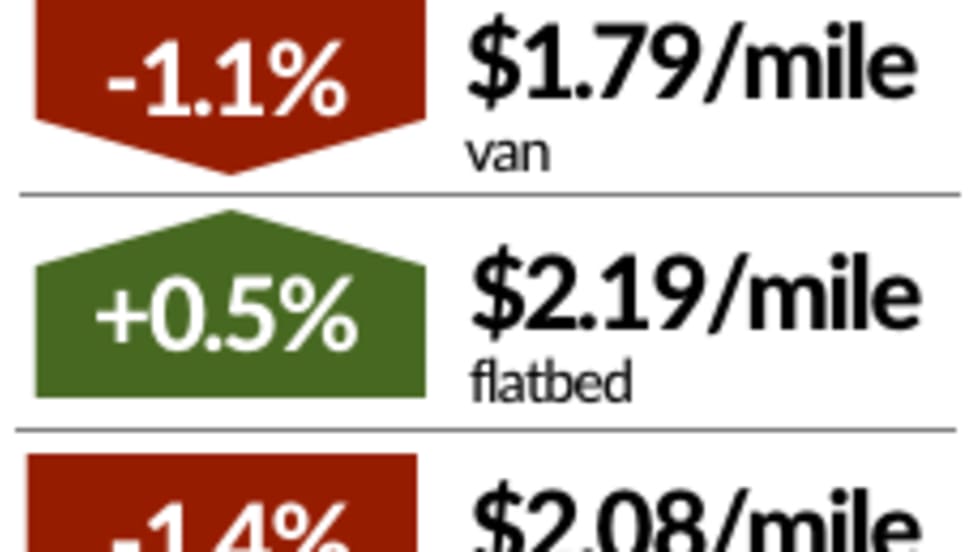Spot truckload freight rates moved slightly lower for the second week in a row as freight volume remained strong, according to the freight matching service provider DAT Solutions.