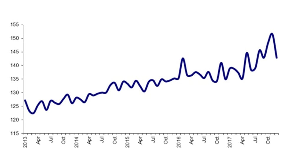 The American Trucking Associations' advanced seasonally adjusted For-Hire Truck Tonnage Index increased by 3.7% overall in 2017 compared to the year before, marking its largest annual gain since 2013.