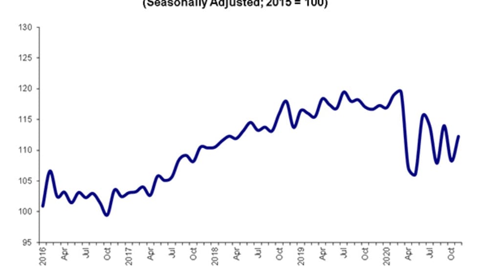 Truck tonnage in November was up compared to October but down year over year, according to the American Trucking Associations.