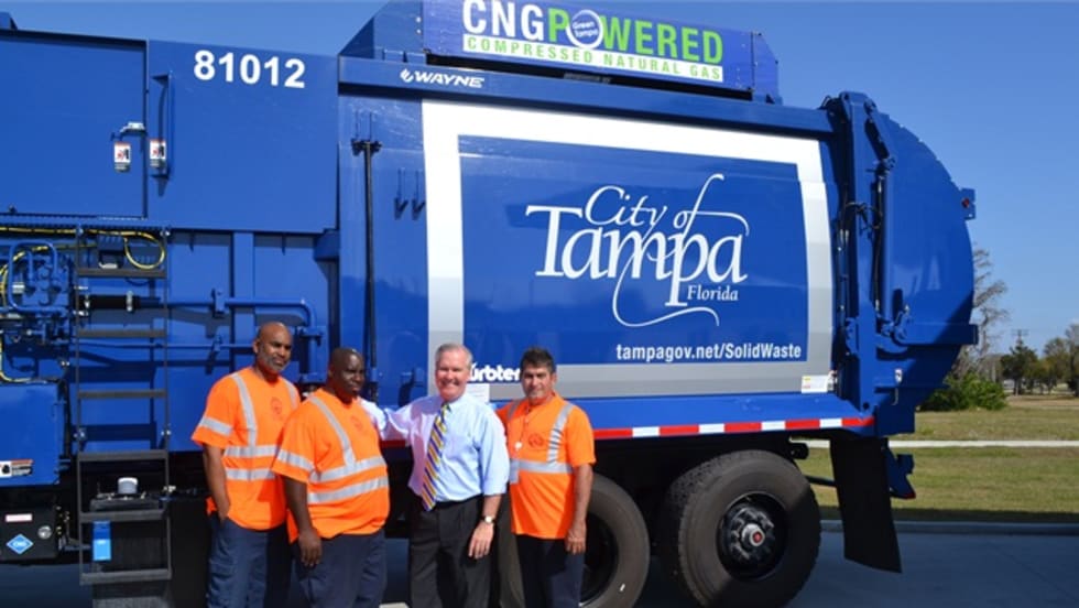 The City of Tampa has begun rolling out a new fleet of compressed natural gas refuse trucks to help reduce the city's fuel bill, which has reached $1.6 million annually.