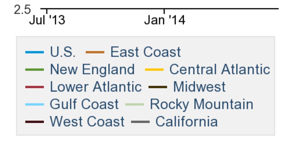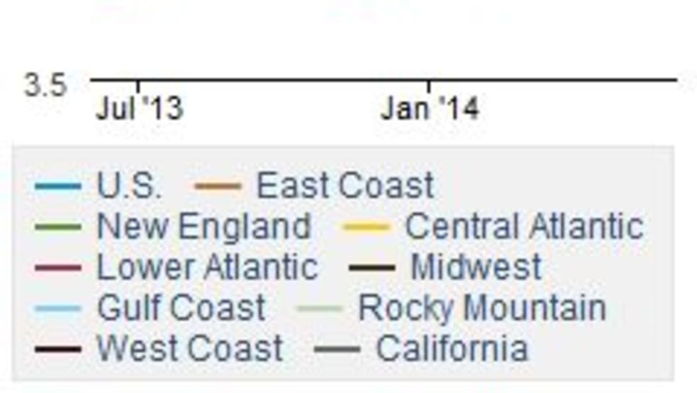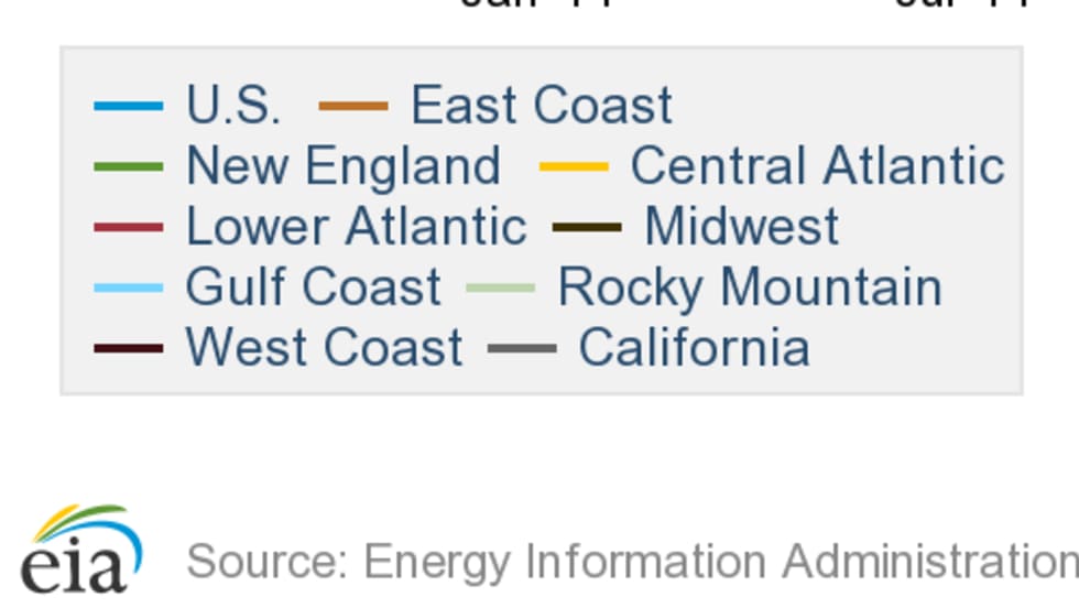 Diesel prices moved lower again this week, if only marginally. Most regions saw declines except the Gulf Coast where prices held steady from last week. Gasoline was up more than 4 cents a gallon nationally, while crude oil saw another lackluster trading day on Monday.