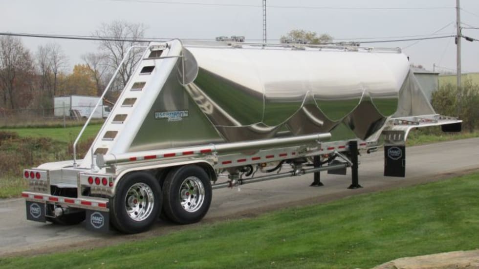 Mac Trailer’s lighter-weight UltraMac pneumatic trailer, designed specifically to haul Portland Cement, features aluminum design and onboard scales.