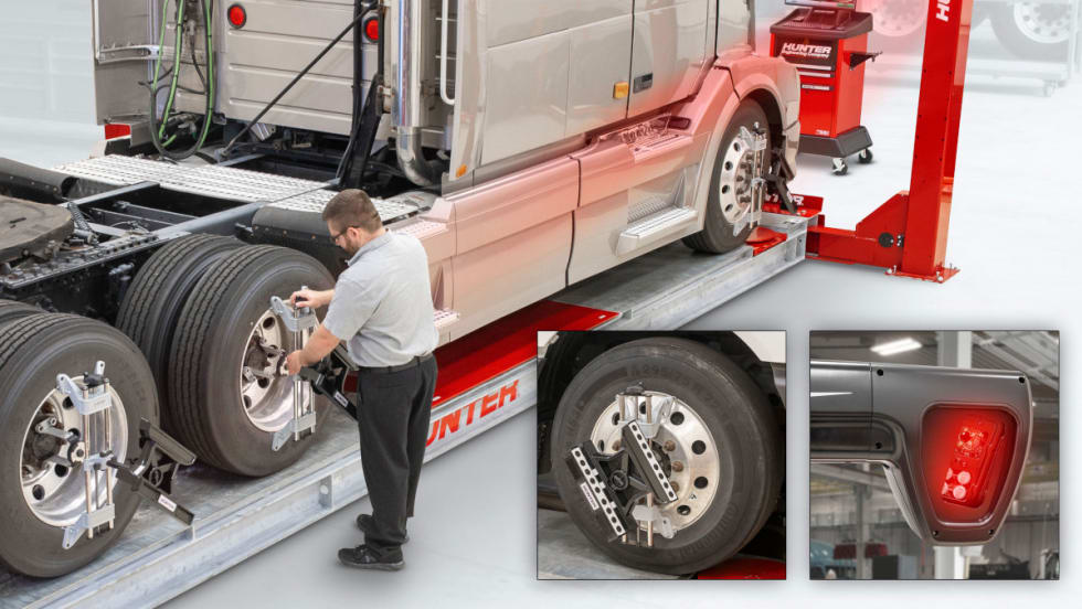 Hunter’s new WinAlign HD alignment system allows fleet operators to perform truck and trailer alignments without unhooking the trailer from the tractor, maximizing workflow and reducing setup time.