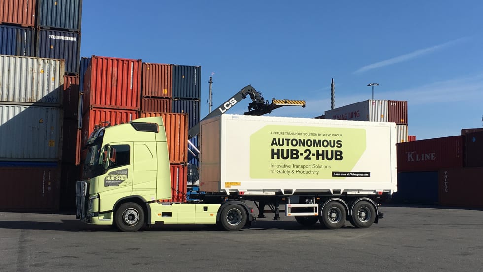 The Volvo Group demonstrated a new self-driving truck, designed to travel autonomously from one hub to another, at the Volvo Group Innovation Summit in Beijing, China.