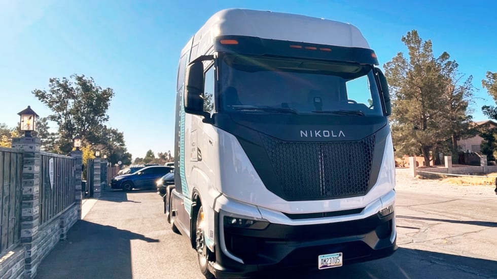 HDT's Jack Roberts takes the Nikola Tre hydrogen fuel-cell truck for a short test drive during CES 2024. High tech aside, the Tre FCEV is fleet-focused and driver-friendly.