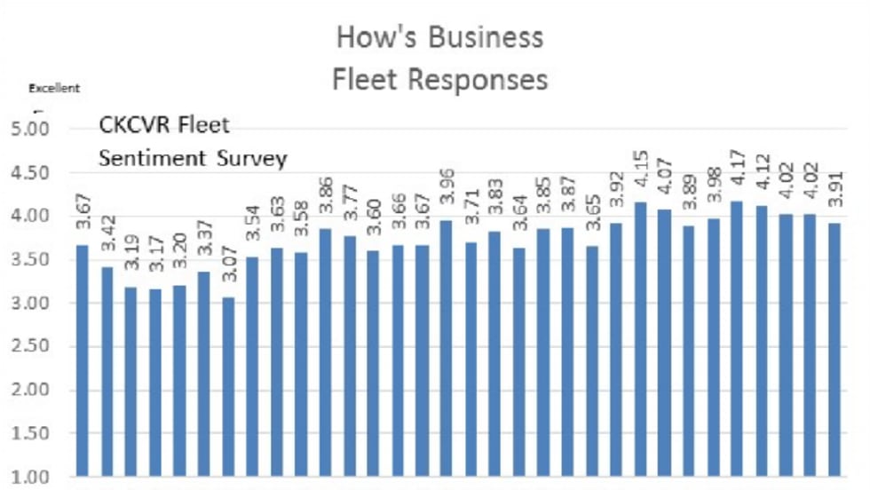 Recently surveyed truck fleets are not reporting “doom and gloom” despite a slowing industry environment and a desire for more freight by some, according to the Q2 CK Commercial Vehicle Research Fleet Sentiment Report.