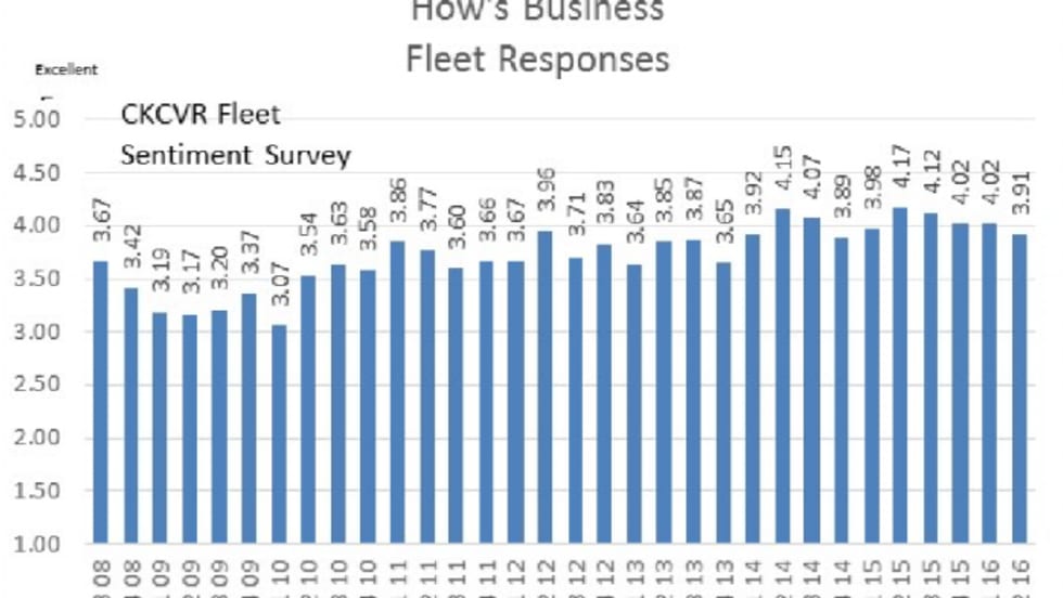 After enduring a bruising first quarter that saw falling profits at many fleets, it comes as no surprise that in a second quarter survey of business conditions fleet executives are feeling a bit down.