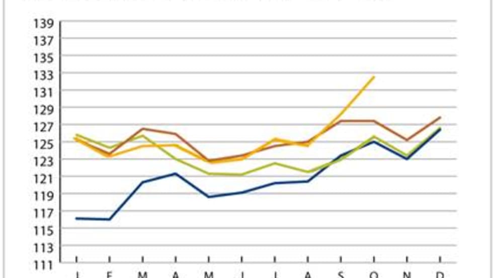 Newly released figures show truckload linehaul rates as well as those for intermodal shipments moved higher again in November, when compared to a year earlier. But they also showed declines from the month before.