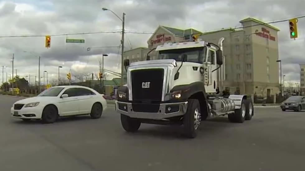 This long-hooded model with forward-set steer axle is the nicest-driving Cat Truck yet.