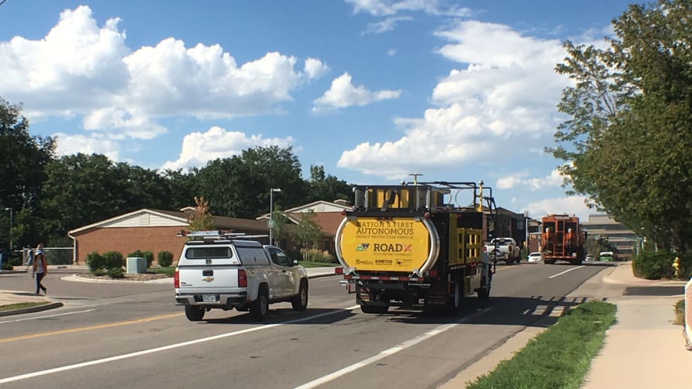 The Colorado Department of Transportation (CDOT) unveiled the world's first self-driving work zone vehicle designed to improve safety for road maintenance crews. The vehicle is positioned behind road construction crews to protect workers from the traveling public.
