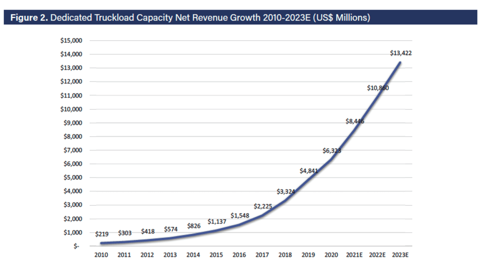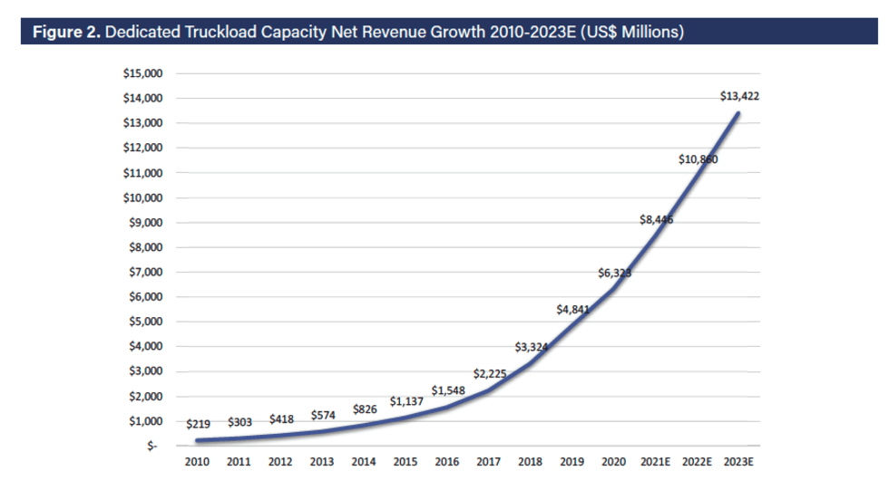 Dedicated truckload capacity has been growing more than five times the rate of traditional dedicated contract carriage, according to Armstrong & Associates.