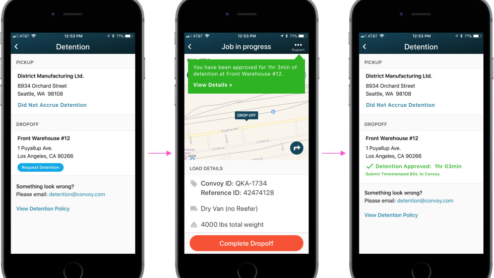 The Convoy freight matching service is offering to pay for extended delays that are out of a driver’s control with a new Automated Detention feature.