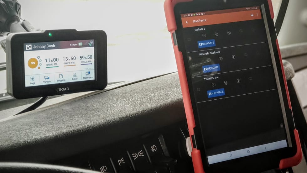 Eroad Go connects to a truck fleet’s transportation management system to help dispatchers make better decisions on the fly, while also connecting them to drivers through the Go mobile app.