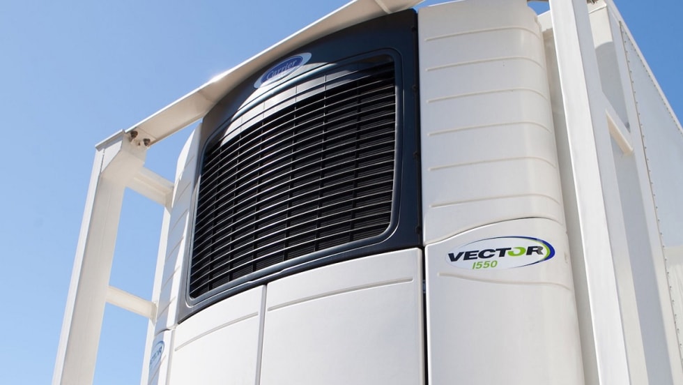 Carrier Transicold’s Vector 1550 domestic intermodal refrigeration system features a thin profile that allows for more cargo capacity within a standard 53-foot North American intermodal container.