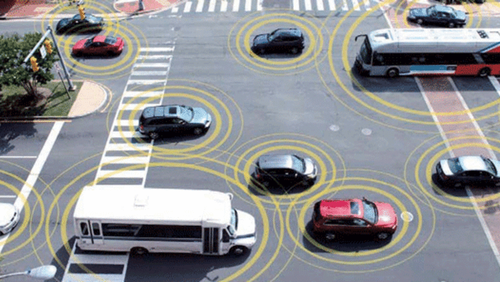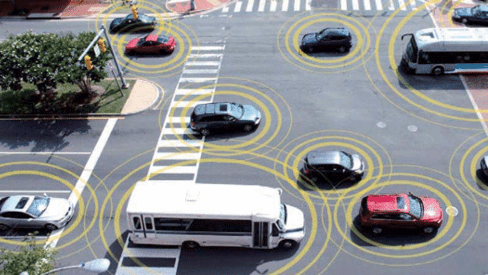 Imagine: A truck driver gets a signal on his dash, warning him that a car ahead that he cannot see has slammed on the brakes. Or that he's going too fast for the curve ahead/