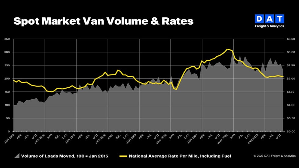 DAT Analytics reports a good November for truckload freight volumes driven by a post-Thanksgiving surge.