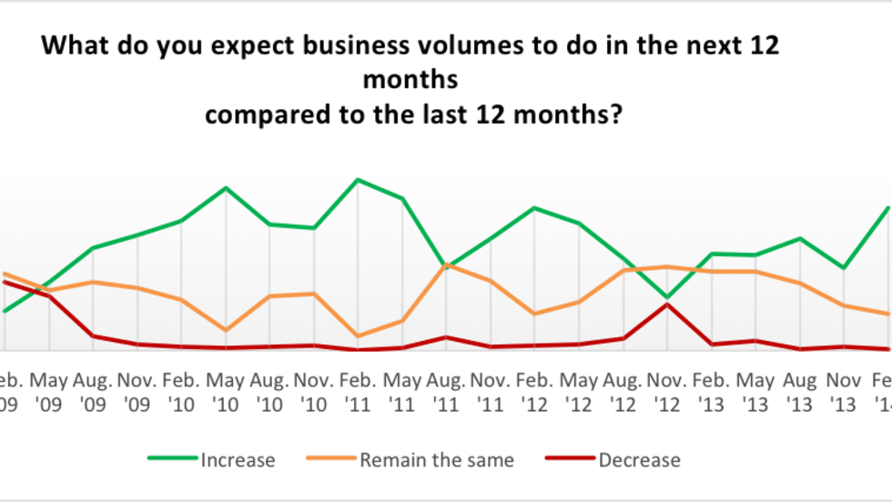 Newly published results from a survey conducted by the trucking consultancy group Transport Capital Partners show increased optimism among trucking executives when it comes to higher freight rates and volumes.