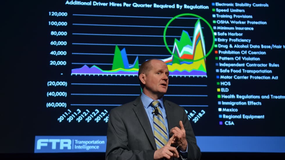 LOUISVILLE, KY -- The U.S. economy is "nowhere near” slipping into recession. But the economy is sending mixed signals, so what's going to happen to freight demand over the next several months? FTR's Eric Starks shared his insights at the MATS Fleet Forum Wednesday.