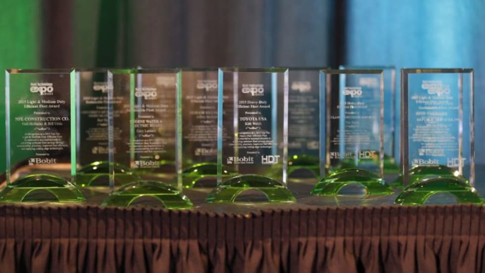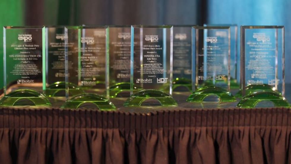 Many fleets were honored but only six took the top honors of the HDT Efficiency and Sustainability awards at the 2015 Fleet Technology Expo at an Aug. 26 ceremony.