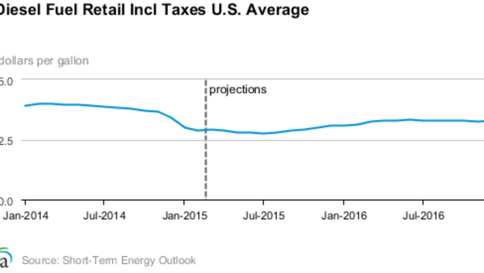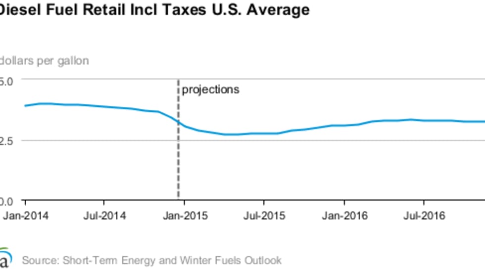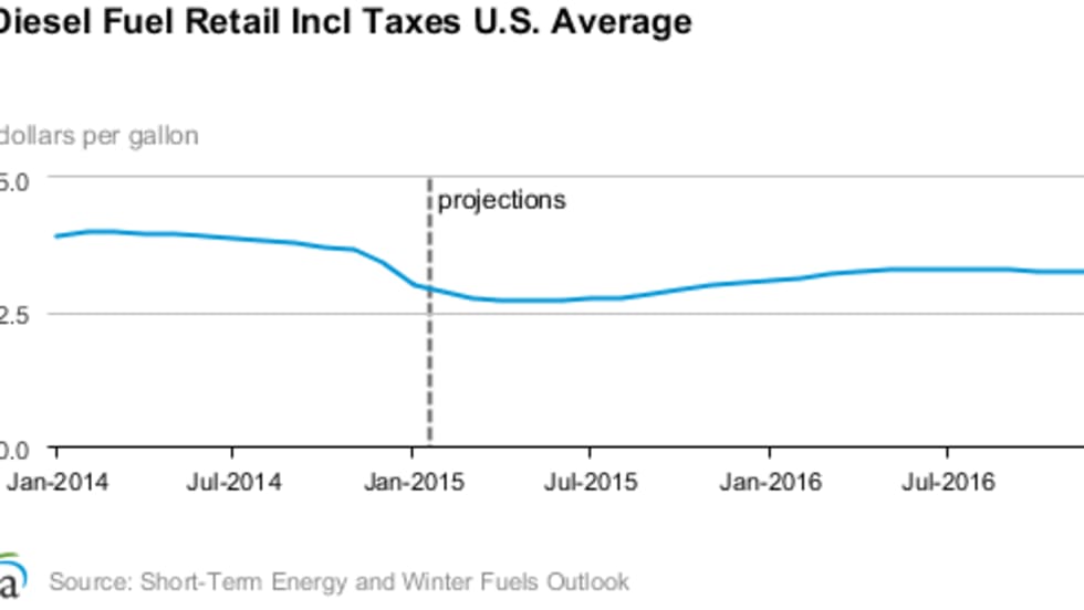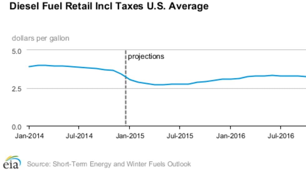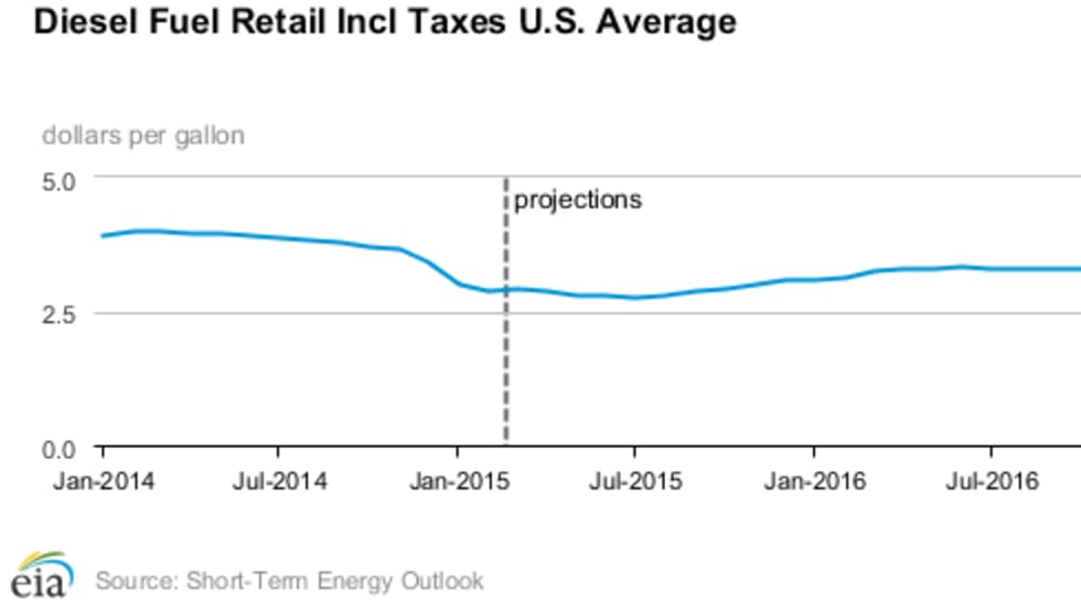 In the wake of diesel prices falling from an average of more than $4 per gallon nearly a year ago the U.S. Energy Department's Energy Information Administration has lowered its price forecast from last month’s prediction.