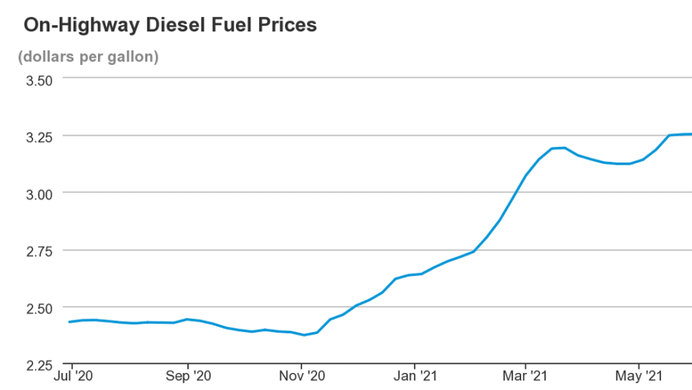 National on-highway diesel prices rose to $3.33 per gallon last week, as crude oil prices hit their highest level in more than six years.