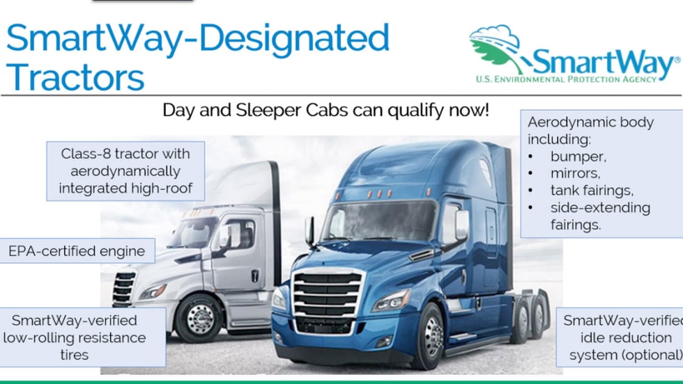 The Environmental Protection Agency is making some changes to its SmartWay program that offers information on verified fuel-efficient technologies. Day cabs are now eligible for the SmartWay designation, and research into fuel-efficient retreads will result in changes to how those products are classified.