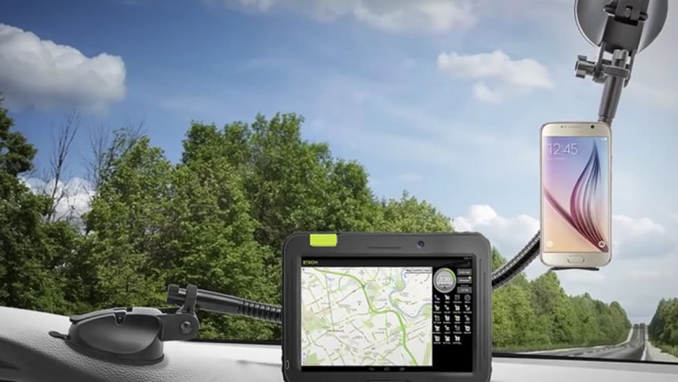 RoadPro’s Trucker Tough Gear Rack System is an in-vehicle mounting solution for mobile devices such as cell phones, tablets and GPS systems.